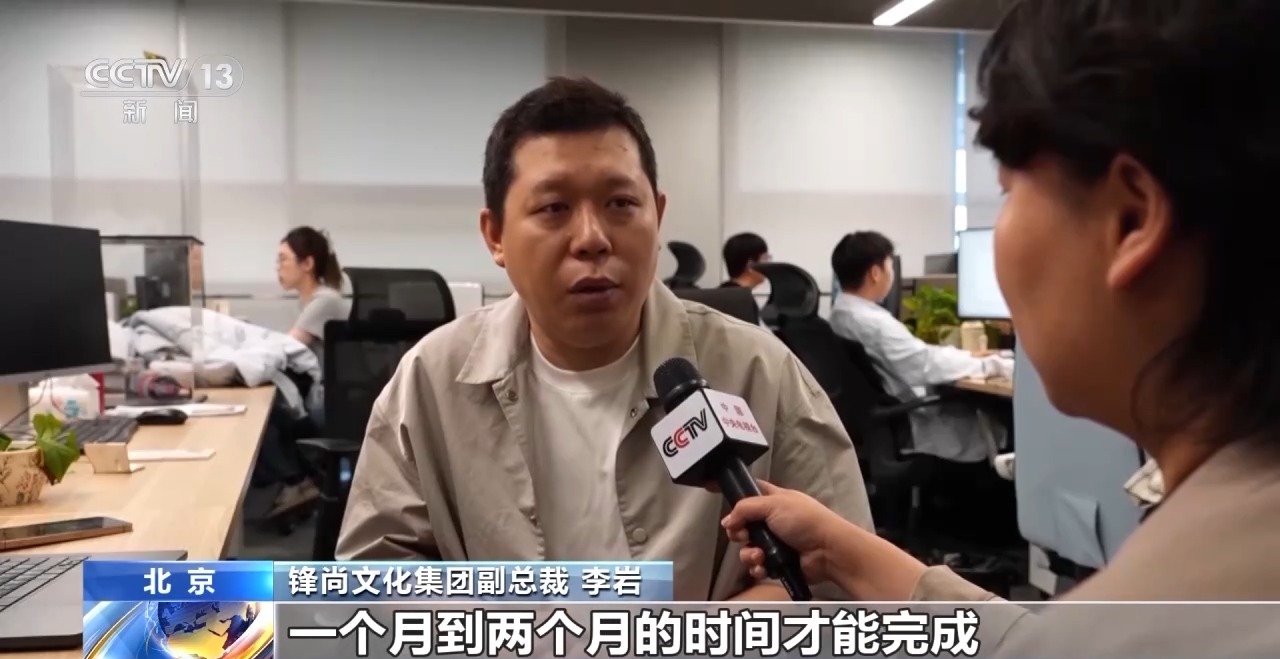 锋尚文化集团副总裁 李岩:可能一条片子,至少需要一个月到两个月的时间才能完成。那现在我用AI的话,它直接就给我从动画、特效、光效,最后给我一个成品,所以说这个飞跃是从一个月变成几分钟,这种时间的升级是非常快的。