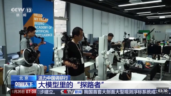智源研究院院长 王仲远:我们早在六年前就布局了大模型的技术研发,在今年我们发布了“悟界”系列大模型,并且我们将所有的科研成果都进行了开源,所以从发布之后,国内非常多的这些机器人公司就主动的联系我们,跟我们建立了合作的关系。