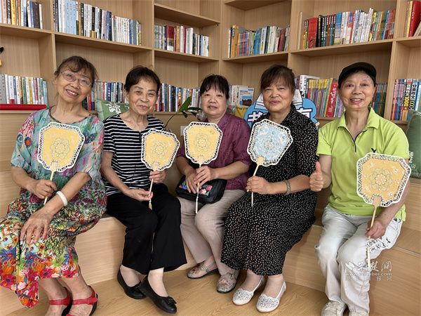 “宋锦因盛于宋代而得名,最初为满足宫廷服装和书画装帧的需要而生产。”在非遗团扇DIY环节,专业老师详细讲解了宋锦和团扇的历史文化渊源,并演示了宋锦珍珠团扇的制作步骤与技巧。随后,在老师的指导下,居民们依照团扇轮廓裁剪宋锦布料,再将裁剪好的布料贴合在扇面上,点缀珍珠配饰。制作过程中,大家不时互相交流心得,分享制作窍门,现场氛围融洽而热烈。经过一番努力,一把把精美的宋锦团扇诞生了。