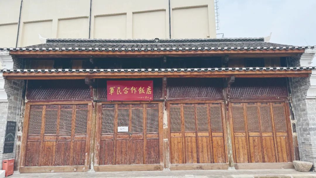 他口中的地方,正是承载着荆门特殊抗战记忆的市级文物保护单位——军民合作饭店旧址。门楣上,“军民合作饭店”六个大字遒劲有力,落款“一九九三年六月,曾志”,这是无产阶级革命家曾志同志在离世前五年留下的珍贵墨宝。