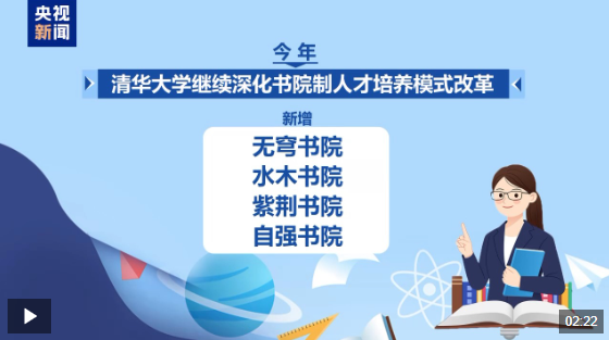 今年,清华大学继续深化书院制人才培养模式改革,新增无穹书院、水木书院等四个书院,打破学科壁垒,把传统工科和现代信息科技、人工智能等深度融合,培养交叉工程领域的创新领军人才。目前,清华大学已有15个书院,预计有近60%的2025级本科生将进入书院培养。