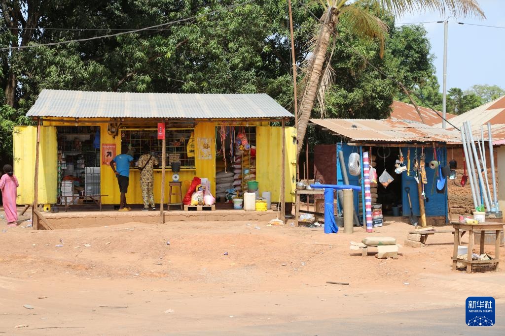 这是6月15日在几内亚比绍比翁博省萨芬区拍摄的中国援建萨芬公路路边的商店。新华社记者 张健 摄