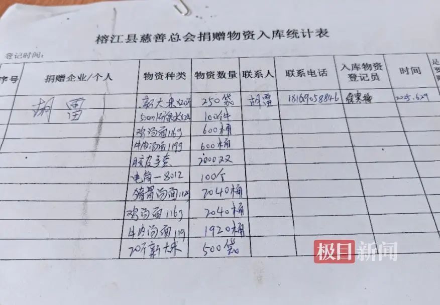 与胡雷同行的李明对记者称,二人相识十几年,曾一起驰援地震灾区。他告诉记者,此次驰援榕江,胡雷不仅花完了其账户里的钱,还跟朋友借了几千元。胡雷每次驰援灾区,身边的朋友有钱出钱、有力出力,最少会有1人与他同行。胡雷亲力亲为,跪在地上、车上装卸物资,一趟走下来,连续熬夜,精力、体力就跟不上了,得好几天才能缓过来。