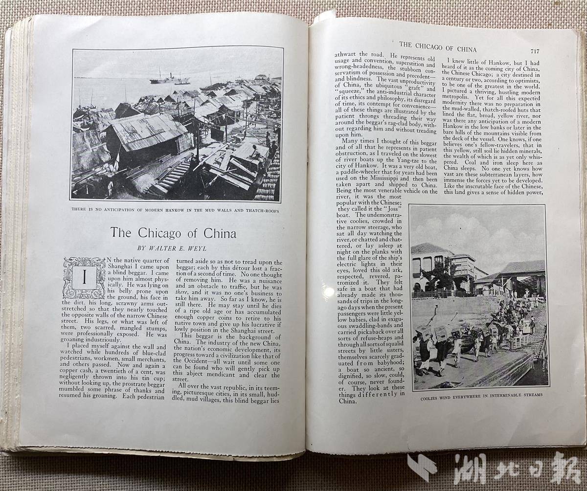 美国《哈普》杂志“The Chicago of China”原文原件。(湖北日报全媒记者刘天纵摄)