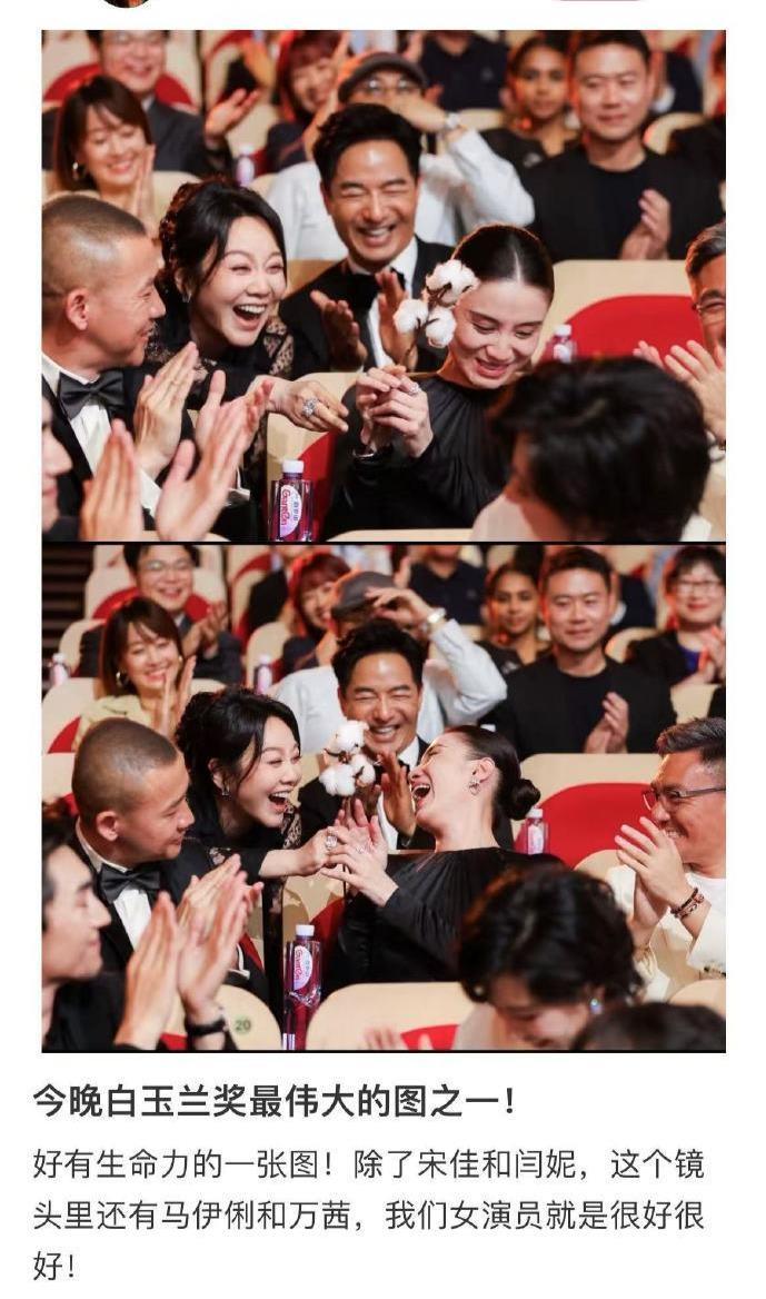 其实,这一届白玉兰原本的讨论氛围是非常温暖和美好的,留下了令人动容的女性力量绽放的时刻。宋佳获奖时关于“女性创作力”的发言,自信强大、掷地有声,宣布她得奖时,闫妮给她送上一朵棉花,马伊琍微笑着为她鼓掌,钟楚曦更是激动落泪,这些充满了喜悦和感动的画面,展现了女性创作者之间珍贵的理解与支持,传递着激励所有女性追求梦想、成就自我的精神力量。这种强大的感染力、积极的引导力,已经超越了奖项本身,直击观众的心灵。这难道不值得我们去聚焦、去讨论、去感受吗?为何要让对某一位演员缺席的过度讨论和猜测,遮蔽了这些真正发生过的,让人内心鼓舞的闪光点?
