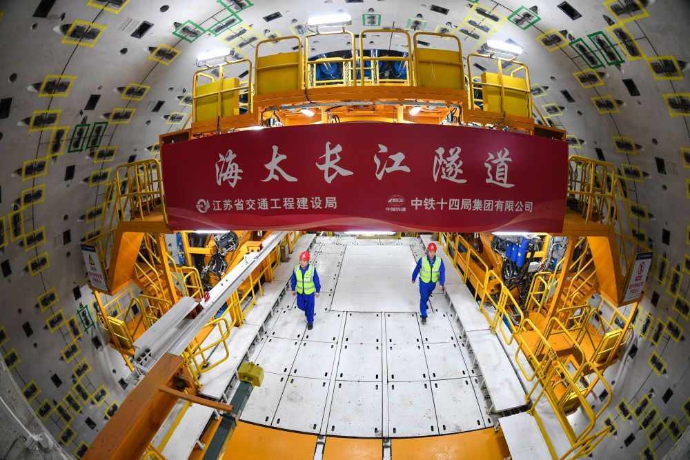 在连接南通海门与苏州太仓的海太长江隧道工程现场,最大开挖直径超16米的盾构机“江海号”昼夜不息,向着长江水下75米深处掘进,为这条世界最长的高速公路水下盾构隧道按下加速键。