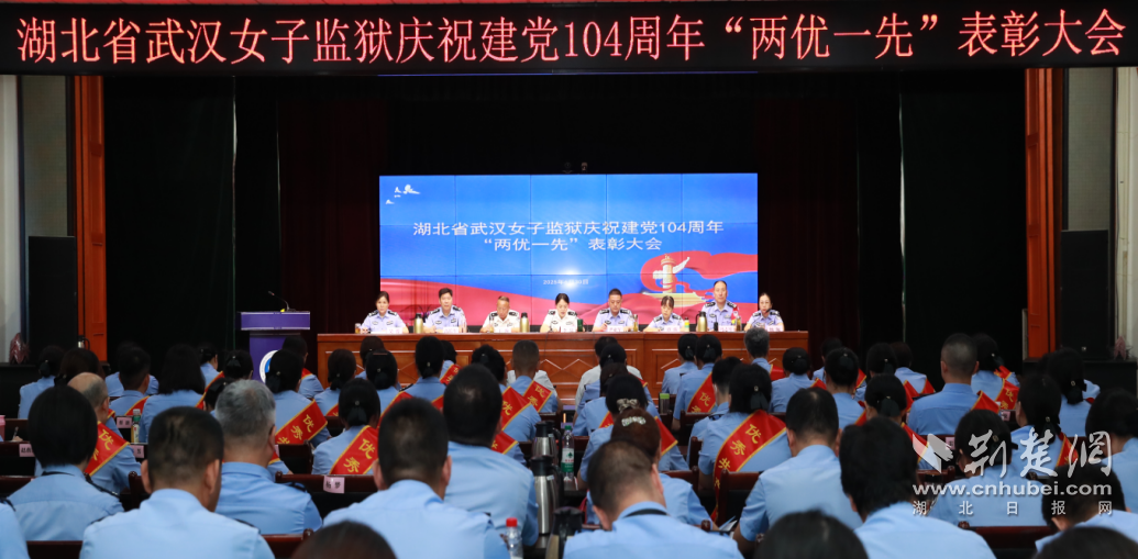 荆楚网(湖北日报网)讯(通讯员 朱莹莹)6月30日上午,在“七一”建党节即将到来之际,湖北省武汉女子监狱召开庆祝中国共产党成立104周年“两优一先”表彰大会。监狱党委班子成员、中层领导、新发展党员、“两优一先”民警职工代表及家属、“光荣在党50年”老党员代表、离退休干部等近100人齐聚一堂,共同庆祝党的生日。会议由监狱党委副书记、政委尹亚军主持。