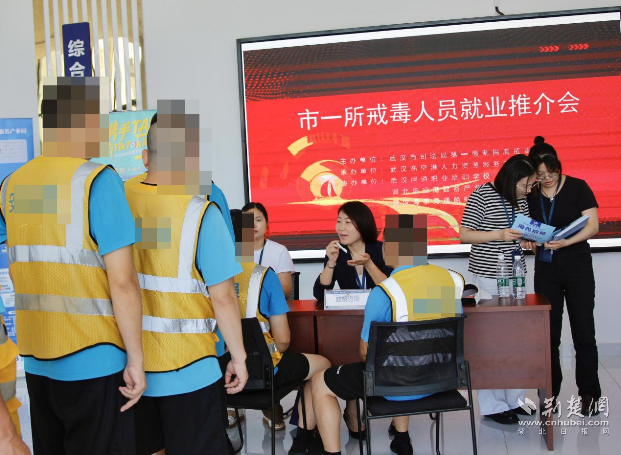荆楚网(湖北日报网)讯(记者 周梦伊 通讯员 李红军 雷恒)就业是戒毒人员持续保持操守,顺利回归社会的关键和难点。为帮助戒毒人员解戒后更好回归社会,6月30日,由武汉市司法局第一强制隔离戒毒所主办,武汉临空港人力资源服务产业园承办,武汉问道职业培训学校、湖北临空港数谷产业园管理有限公司、武汉海事海通船舶有限公司协办的戒毒人员职业指导、就业创业政策宣讲暨就业推介会在第一强制隔离戒毒所开展。