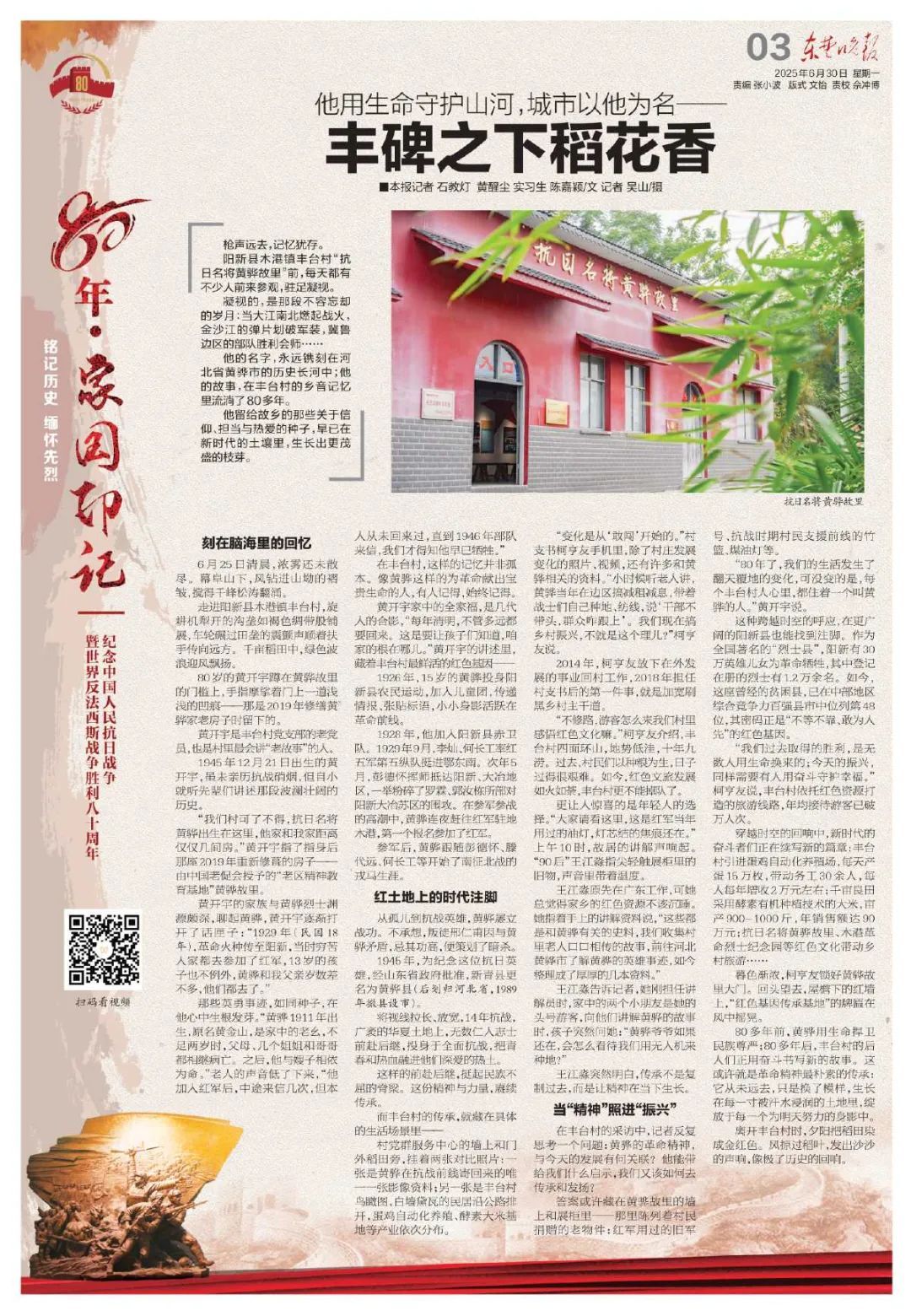 80多年前,黄骅用生命捍卫民族尊严;80多年后,丰台村的后人们正用奋斗书写新的故事。这或许就是革命精神最朴素的传承:它从未远去,只是换了模样,生长在每一寸被汗水浸润的土地里,绽放于每一个为明天努力的身影中。