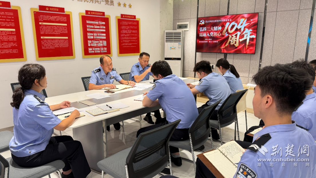 荆楚网(湖北日报网)讯(记者 白云 实习生 熊子恒 通讯员 崔晓蕾)在武汉市公安局江岸区分局百步亭派出所党员活动室,6月30日,一场别开生面的座谈会中,青年民警畅谈心声,分享感悟,互学互鉴,感悟入党的初心使命。