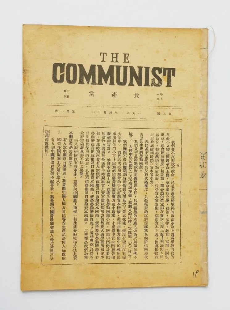 一九二一年四月七日第三号《共产党》杂志。这年7月,中国共产党第一次代表大会在上海召开,在嘉兴南湖船上闭幕。十三位会议代表中董必武、陈潭秋、包惠僧是黄冈人。