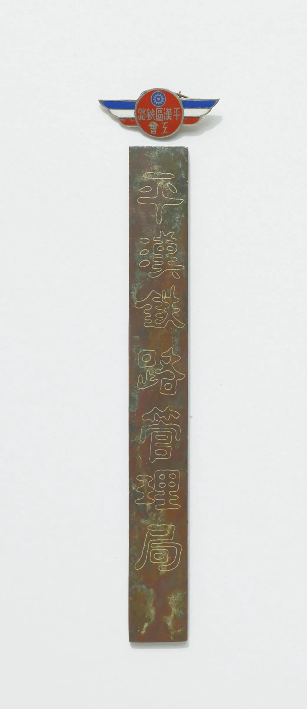 平汉铁路工会徽章、铭文震尺。1923年初,黄冈籍先贤林育南、林育英等工人运动领袖,策划并领导了京汉铁路“二·七”大罢工,组织成立了武汉各行业工会,正是中国共产党工会组织的初创时期。