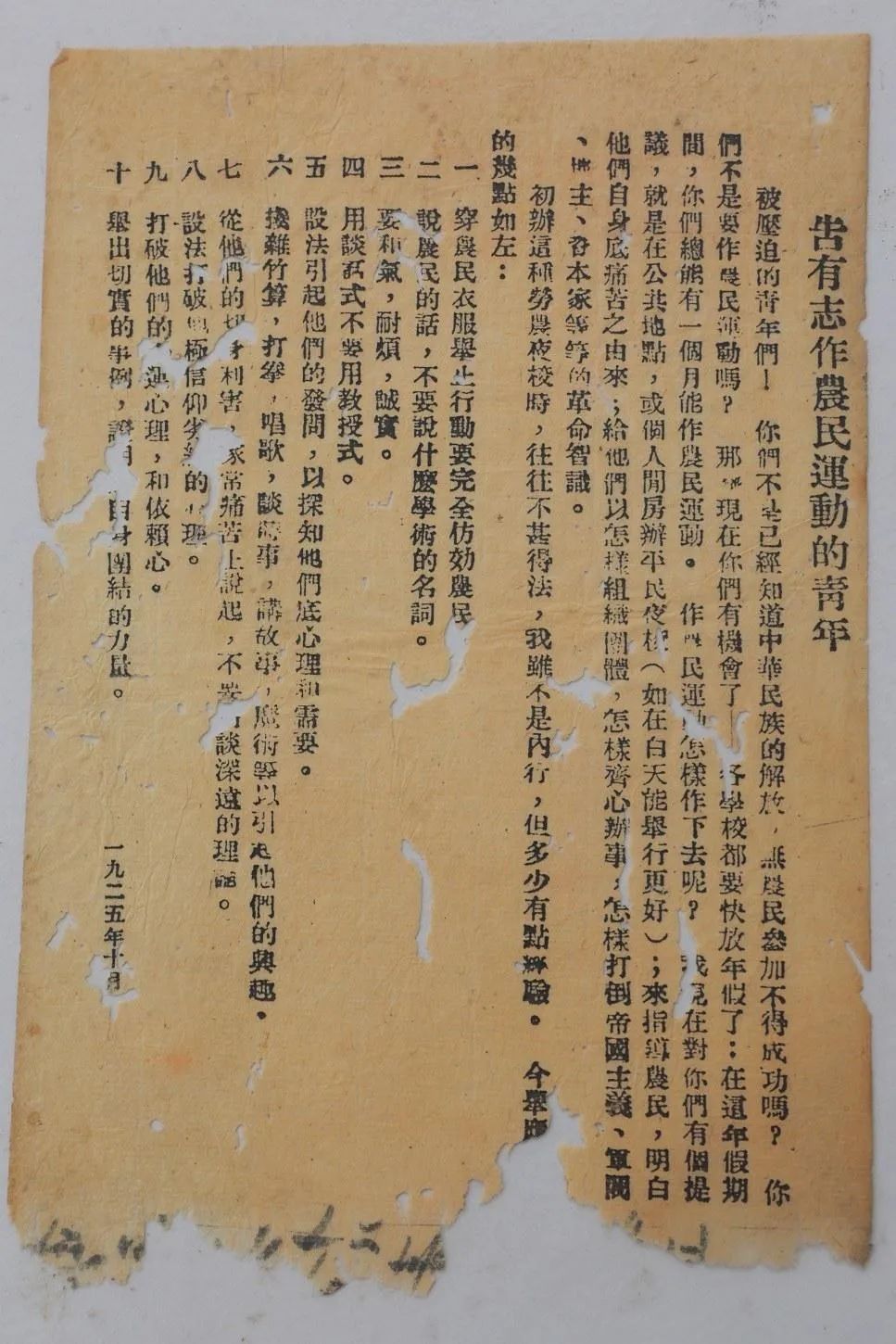 鄂东早期党组织(1925年大革命时期),组织农民运动文告原件。