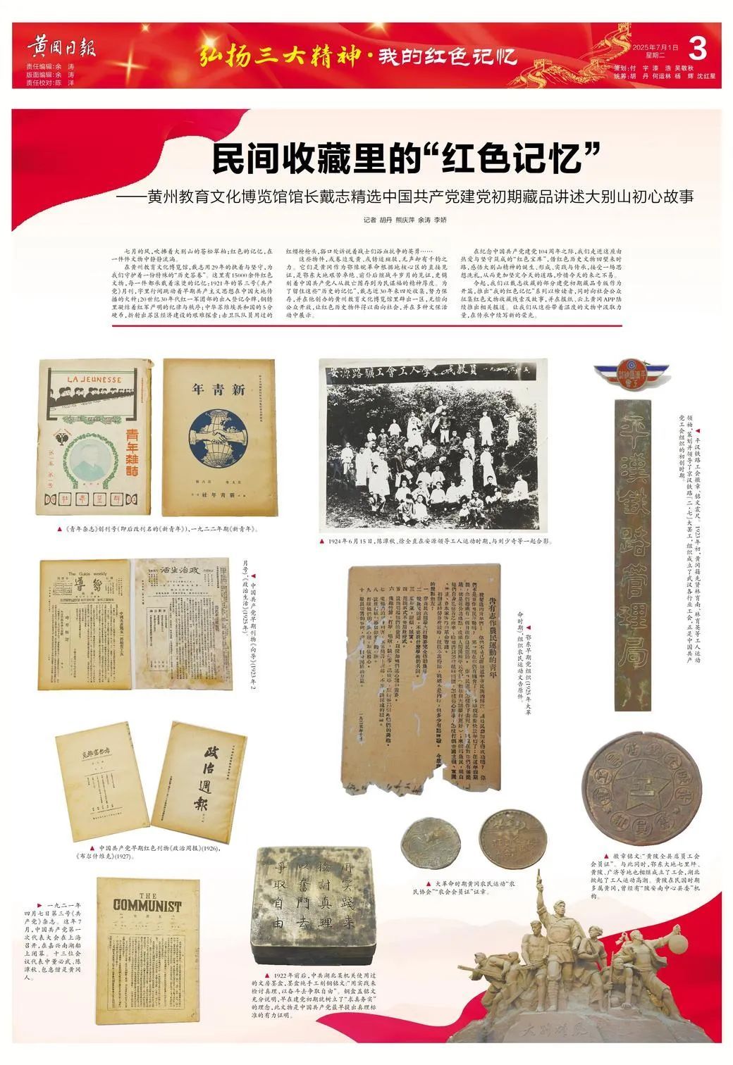 今起,我们以戴志收藏的部分建党初期藏品专版作为开篇,推出“我的红色记忆”系列以飨读者,同时向社会公众征集红色文物收藏线索及故事,并在报纸、云上黄冈APP陆续推出相关报道。让我们从这些带着温度的文物中汲取力量,在传承中续写新的荣光。