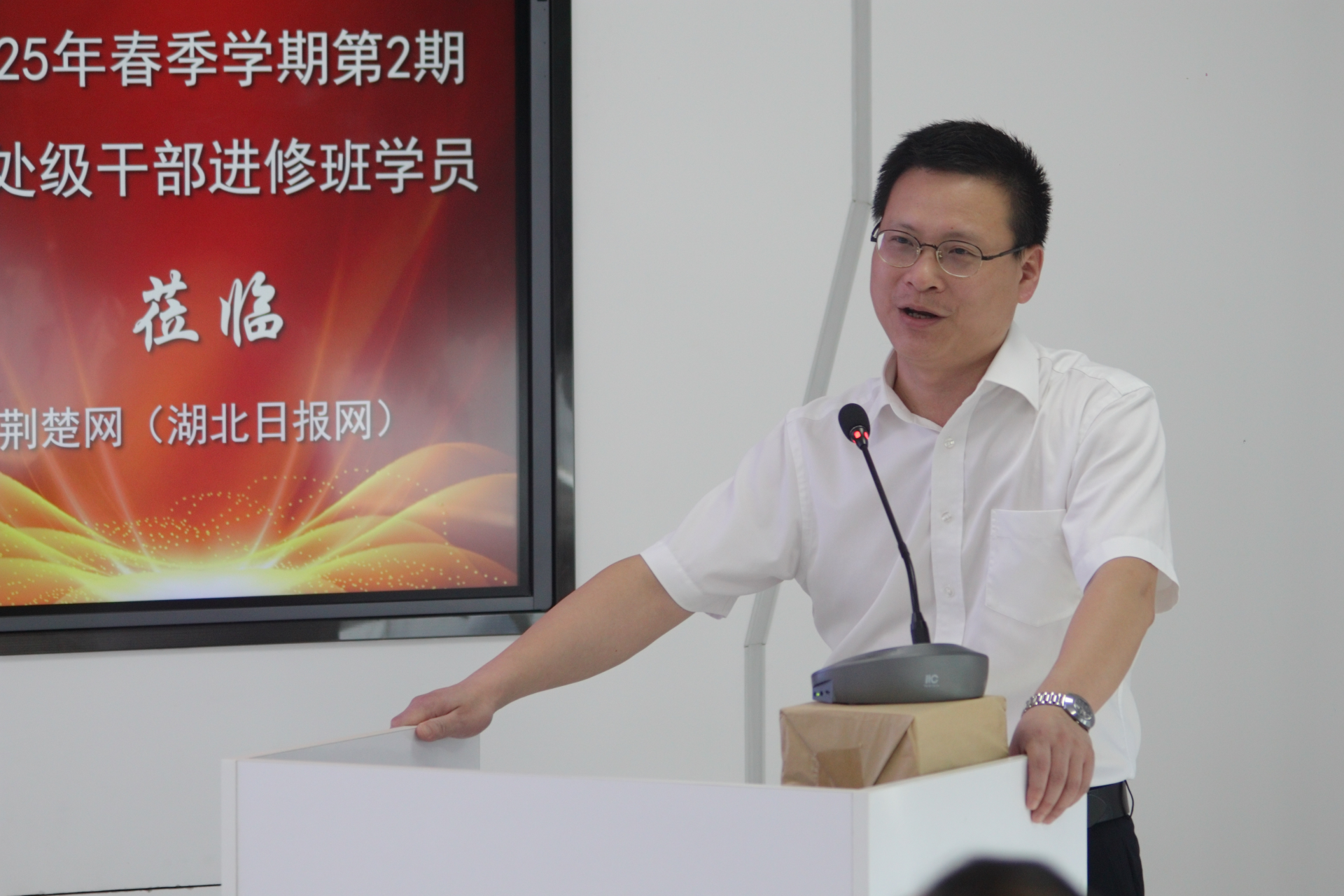 荆楚网(湖北日报网)讯(记者 徐芳)7月1日下午,湖北省委党校(湖北省行政学院)与荆楚网联合开办的2025年春季学期第2期县处级干部进修班现场教学活动,在荆楚网(湖北省网络舆情信息基地)举行。围绕《科学认识网络传播规律 提高用网治网水平》的教学主题,55名学员共同交流探讨,学习如何把握网络传播规律,有效提升网络舆情事件应急处置的效率。