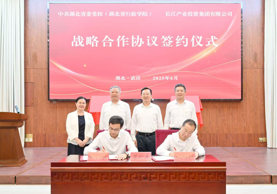 黎苑楚在致辞中衷心感谢省委党校的鼎力支持,并介绍了长江产业集团聚焦人才强企战略,在“引育用留”方面所做的扎实工作和取得的成效。他强调,此次签署战略合作协议,并挂牌设立“中共长江产业投资集团有限公司委员会党校教育培训基地”和“湖北数智治理与安全实验室”(简称“一基地一实验室”),是集团落实“干部素质提升年”部署、贯彻省委省政府人才强省和创新驱动战略的关键举措,也是以实际行动向党的生日献礼。长江产业集团将以此次合作为契机,与省委党校共建红色教育新阵地、共探AI+干部教育新模式、共构人才交流新机制,联合培养造就一批政治强、懂专业、善经营、作风硬的优秀社会主义国有企业家。
