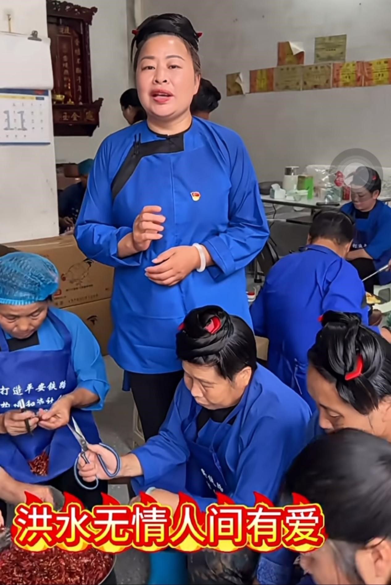 “月寨嬢嬢团”把乡亲们凑出的自家食物烹饪成佳肴,送往洪灾救援前线,她们曾是“村超”赛场活力四射的啦啦队,如今是洪灾面前的娘子军。朴素的蓝布衣裳上,党员徽章闪闪发光。