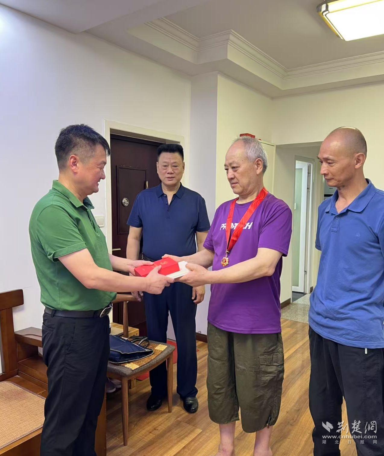 荆楚网(湖北日报网)讯(通讯员 凌端)为庆祝中国共产党成立104周年,弘扬党的光荣传统和优良作风,传递对老党员干部的关心关怀,7月1日,黄陂区司法局党组书记、局长张远波,局党组成员、政治(警务)处主任涂文浩,机关支部副书记、四级调研员彭明祥以及老干支部副书记熊国威一同走访慰问老党员干部,为他们颁发“光荣在党50年”纪念奖章,并向他们致以节日的问候。