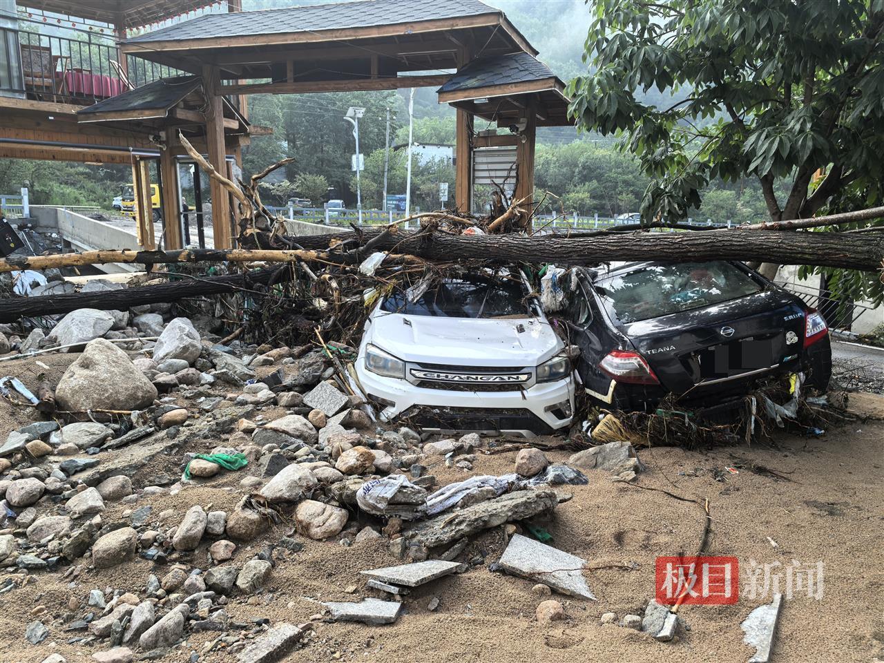 7月2日,在太平镇东坪村老界岭,景区山中经营民宿的刘先生告诉极目新闻记者,目前山上已经断水断电两天,交通中断,车辆无法通行,希望政府能够尽快抢通道路。