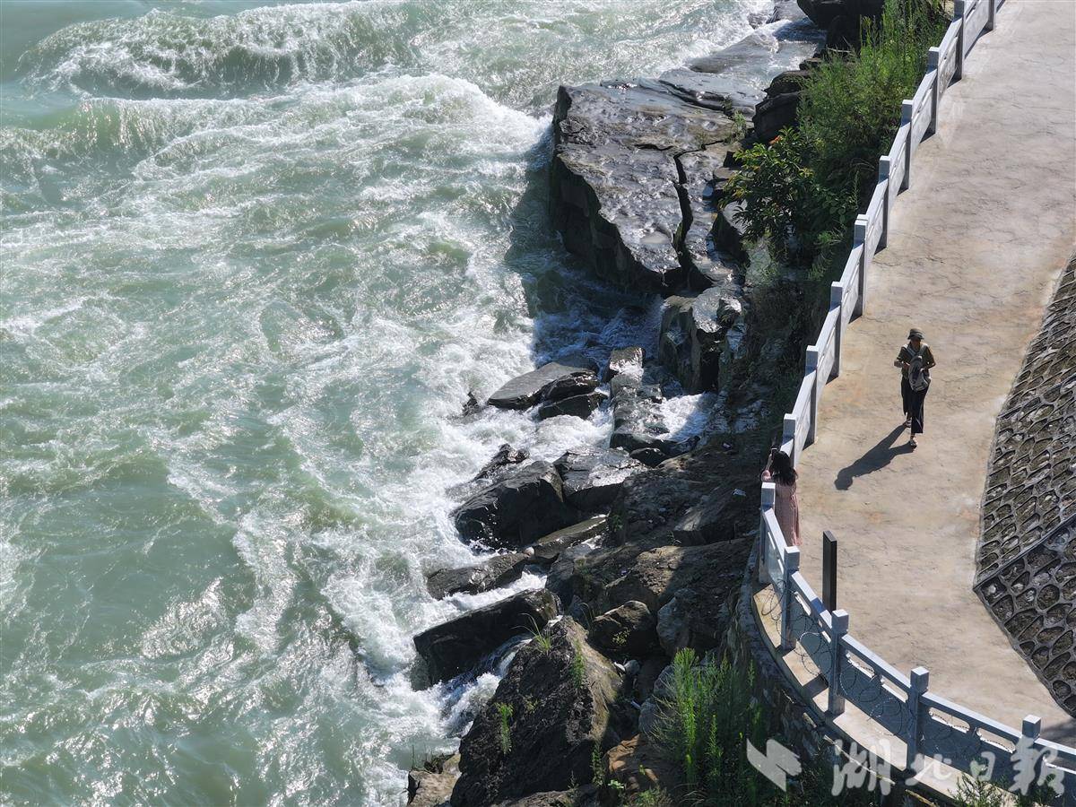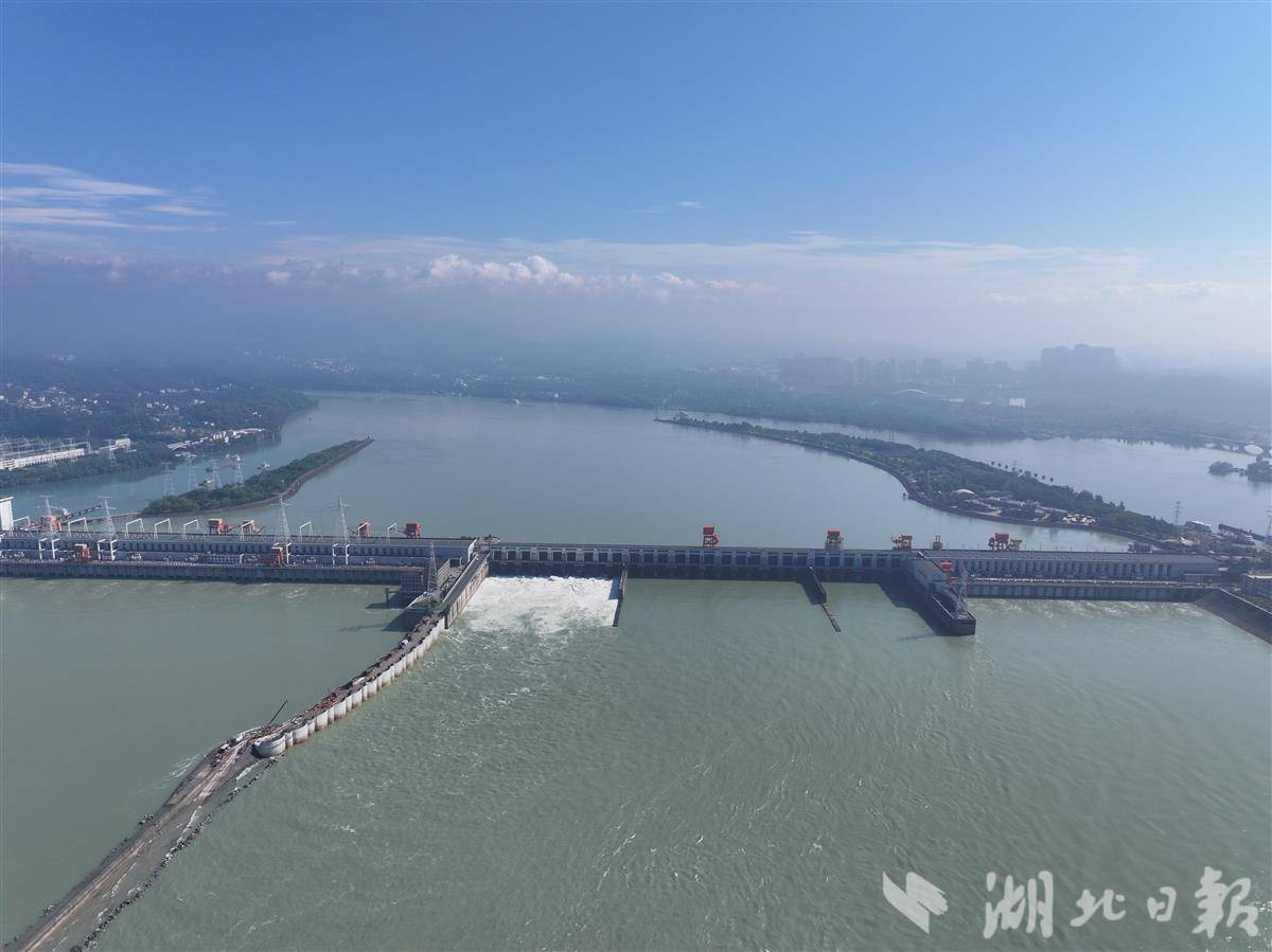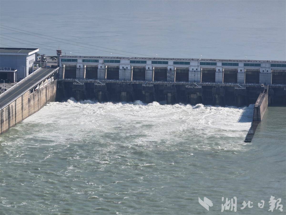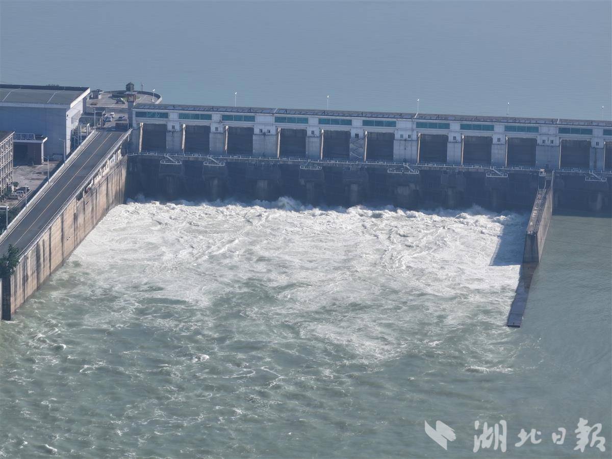 7月2日,葛洲坝水利枢纽开启泄水闸孔泄洪。据了解,因上游水量增加,葛洲坝泄洪腾库。当天上午10时,宜昌水文站实时监测流量达22300立方米每秒。奔腾而出的江水气势磅礴,形成壮观的泄洪景象,吸引了众多市民和游客前往江畔驻足观看。(湖北日报全媒记者 刘曙松 摄)