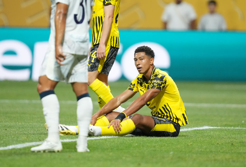 7月1日,多特蒙德队球员贝林厄姆(下)在比赛中