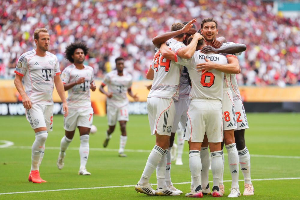 6月29日,拜仁慕尼黑队球员在比赛中庆祝进球