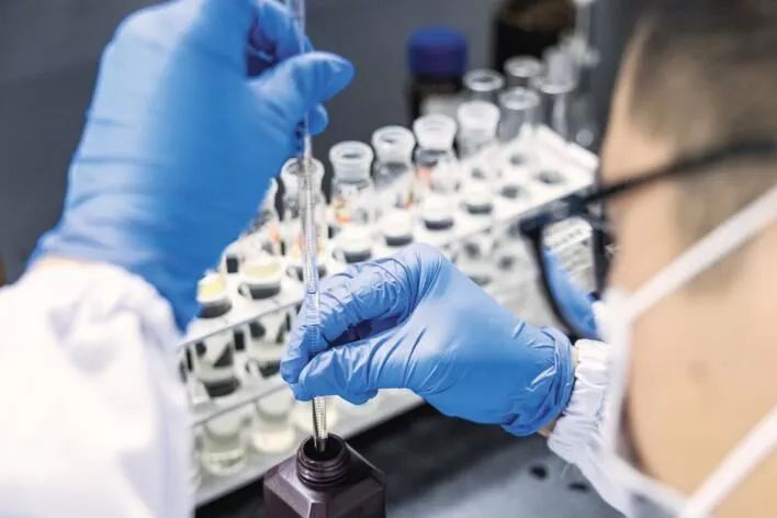 ▼武汉君集环境科技股份有限公司的实验室内,工作人员正在进行水质化验工作