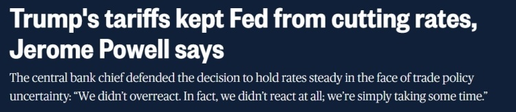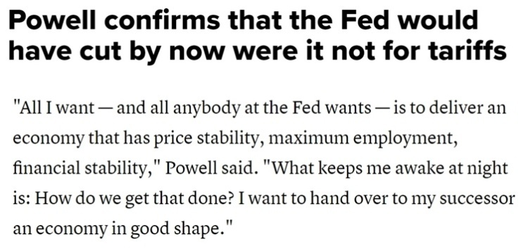 “如果不是因为总统特朗普的关税政策,美联储今年本来早就会降息的,目前也会采取更宽松的货币政策。”