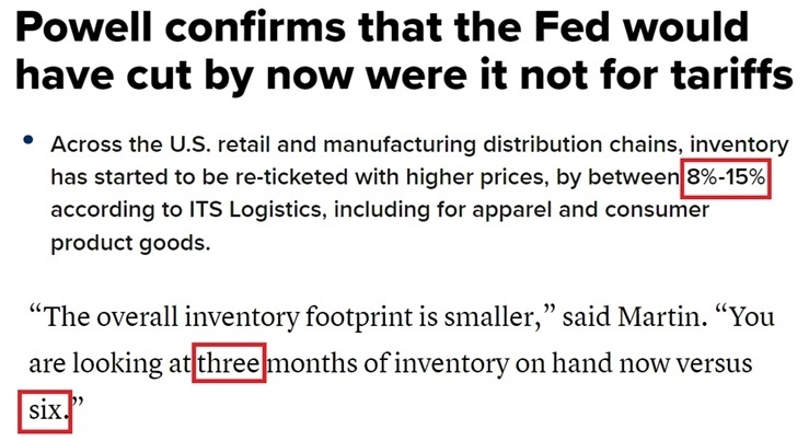 按照他的推测,随着进口越来越受到关税阻碍,美国企业的商品库存大概只能再维持三个月,而以前通常能维持六个月。