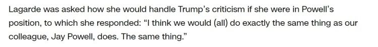 欧洲央行行长拉加德一直公开支持鲍威尔“以数据而非政治为导向”的政策制定方式,称赞他是“勇敢的央行行长的典型”。