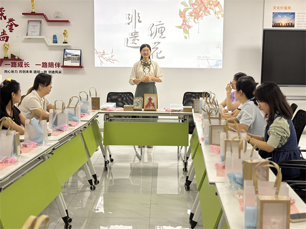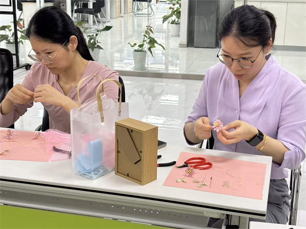 “平时对着电脑加班,手作时特别放松。”陈女士举着自己的作品笑言,不仅学会了手艺,更感受到社区对园区员工的贴心,“这种把非遗送进园区的活动,比单纯开会更有温度。”