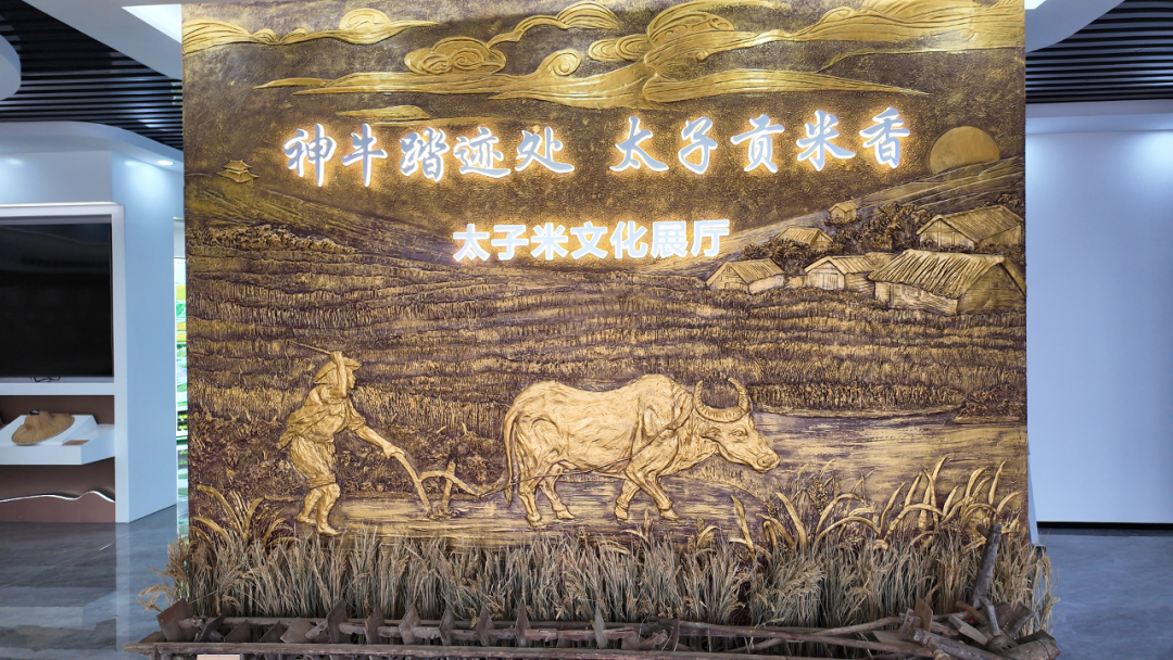 在展厅内,历史典故与文化元素随处可见。它们不仅诉说着太子米背后的故事,更传递出农耕文化的独特魅力。