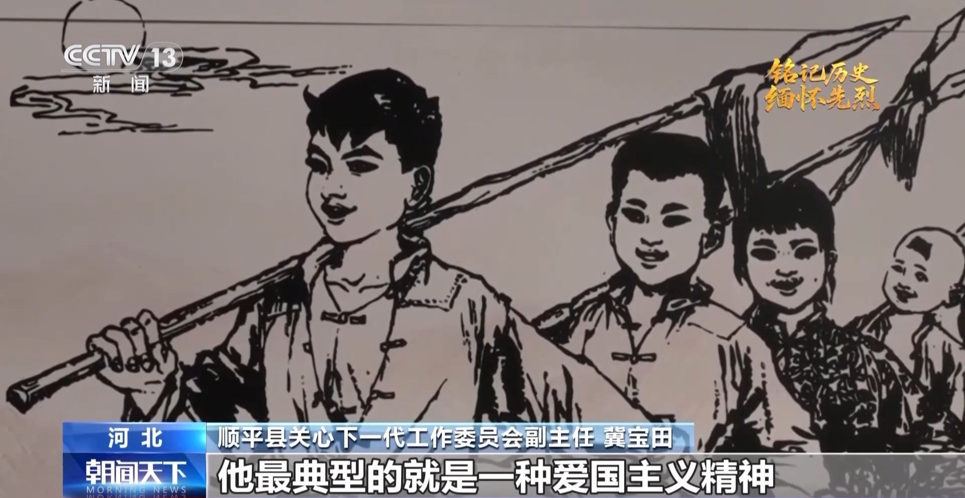 河北省顺平县关心下一代工作委员会副主任冀宝田:他最典型的就是爱国主义精神、民族主义精神,为了民族大义、为了国家,宁肯牺牲自己。