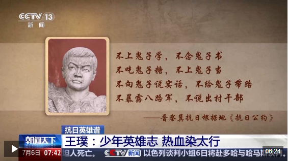 这是抗日战争时期,晋察冀抗日根据地儿童团员们传颂的《抗日公约》,也是野场村儿童团团长王璞和团员们在日寇的枪口前,齐声背诵的最后一段话。