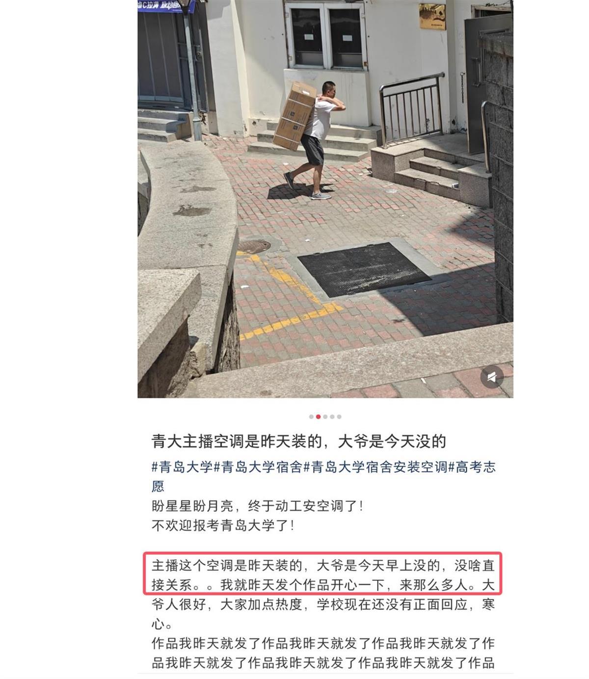 7月6日,有青岛大学学生也在社交平台发文澄清,空调是7月5日开始装的,而宿管大爷是6日上午被发现不幸离世,两者没有直接关系。