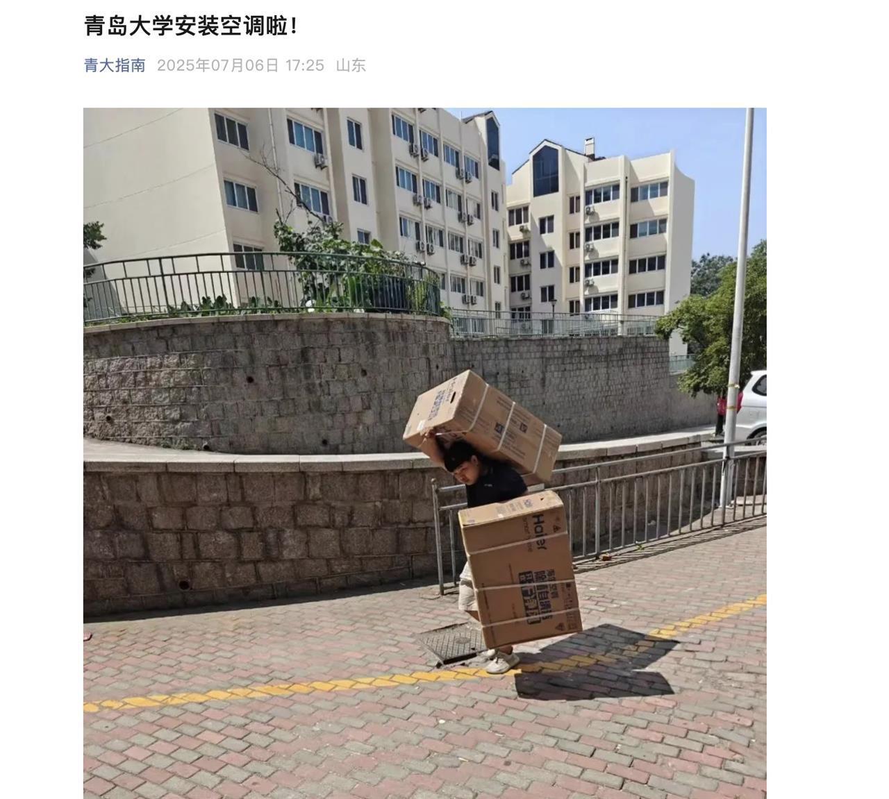 自媒体称青岛大学开始安装空调(图片来源于网络)