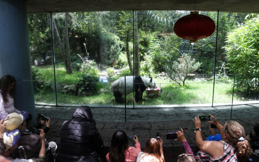 6月29日,近4万名墨西哥各地民众来到首都墨西哥城的查普特佩克动物园为大熊猫“欣欣”庆祝35岁生日。