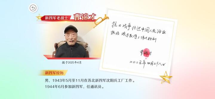 新四军经历:1938年,她加入新四军教导总队第八队(女子队)。在抗日报国的“经济战线”上,为守护党的“钱袋子”,她将金条缝入特制的背心贴身携带,人不离金、金不离人,力保金库分毫不损。