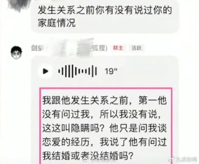 两人线下见面喝酒,随后发生关系。“蓝狐狸”扮演者则在粉丝群回应此事称,未强迫对方,事发前女方只问了自己的恋爱经历,没有询问婚姻情况。