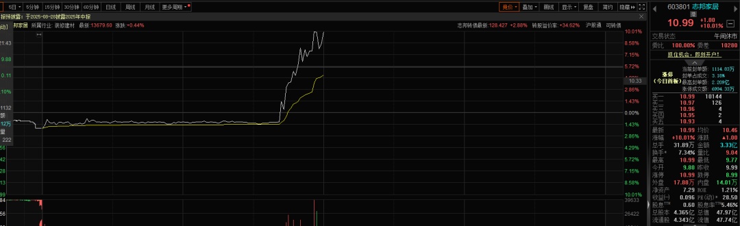 A股多只相关概念股也纷纷大涨,截至发稿,志邦家居涨停,锋尚文化涨超9%。