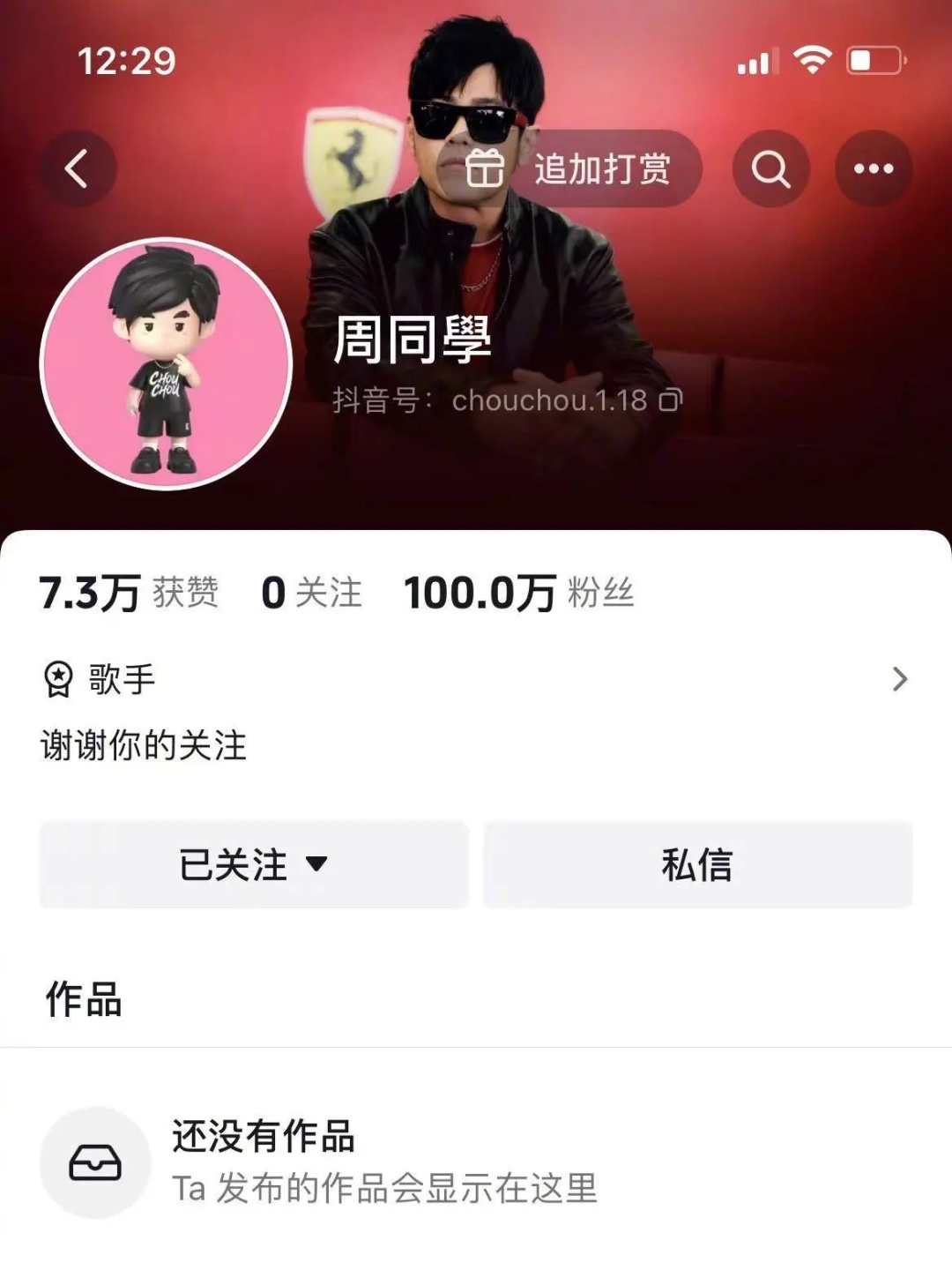 截至7月9日12点29分,记者搜索发现,周同学账号已突破100万粉丝,账号暂未发布作品。