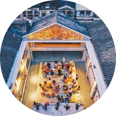 2015年,李继津和合伙人看上了塘口旧墟两处建筑,“原先是旧粮仓周边的五金厂、钟表厂,虽然建筑很旧,但很有设计感,而且旧墟与周围的村子距离很近,有做社区改造的潜力。”说干就干,旧工厂逐渐被改造为时尚的青年社区空间——“塘口空间”,餐厅、青年旅舍、剧场、活动空间等一应俱全,旧工厂里原有的一些制造机械作为历史记忆的“载体”也被保留下来。“建筑不能脱离乡村。”李继津说。