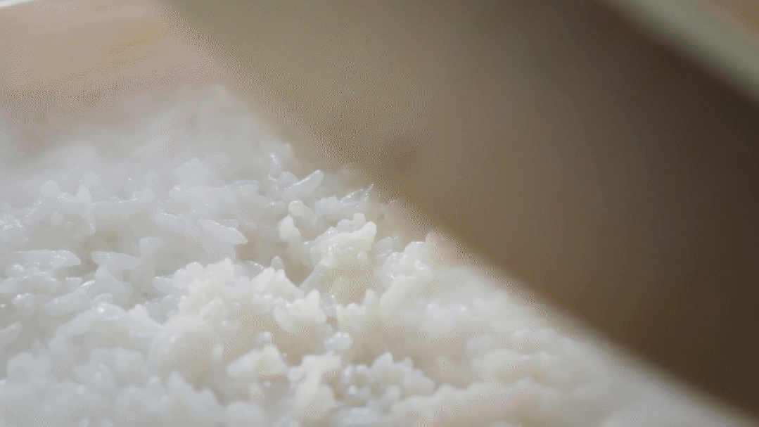 蒸煮的江汉大米油润透亮