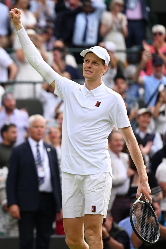 7月9日,辛纳在比赛后庆祝。新华社记者 赵丁喆 摄