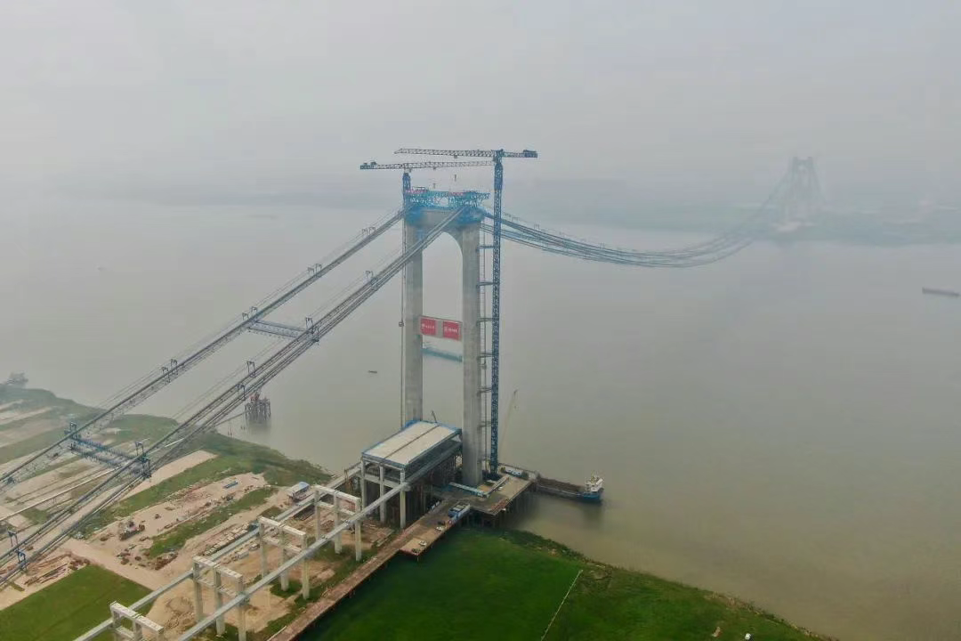 建设中,央企建设团队首创“不同垂度四主缆双层悬索桥”结构,攻克“大跨矮塔”世界难题。作为串接鄂州和黄冈沿江发展轴,对接湖北国际物流核心枢纽花湖机场的重大交通项目,大桥建成后,黄冈主城至花湖机场仅需15分钟,打通黄冈跨境物流新通道。