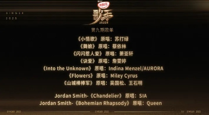 7月9日晚,湖南卫视歌手官宣第九期悬念歌单: