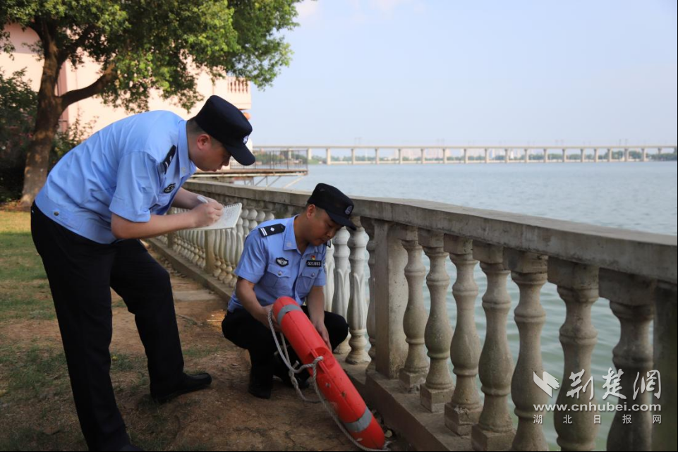 正午时分,汤逊湖面泛着刺眼的白光,热风灼面。因社区三面环水,防溺水是成基冬夏季工作的重中之重。 护栏是否牢固?救生圈是否完好且易于取用?警示标识是否醒目?湖边步道上行人稀少,他带着辅警和巡湖队员,顶着几乎令人窒息的热浪,沿着湖岸线一寸寸“犁”过去。