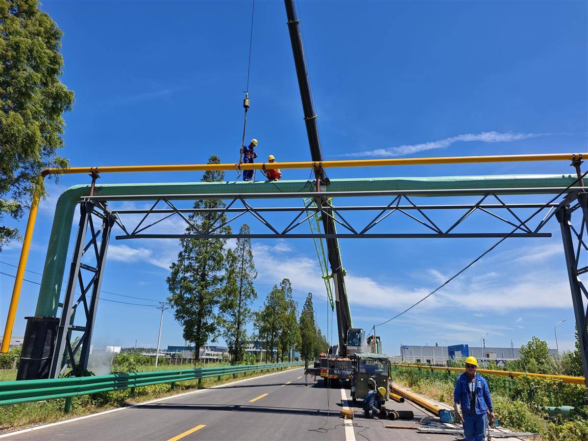 在王场工业园区内,施工人员正抓紧焊接氢气管道,全力破解园区氢能供应难题。