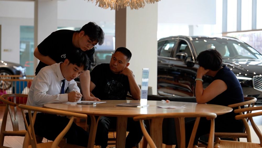 以旧换新政策的加速推进,也激发了汽车置换更新和报废更新的热潮。在保定轩宇俊鹏汽车销售门店,顾客络绎不绝。