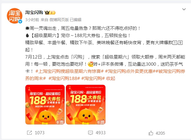 一位知情人士对记者表示,阿里试图再造一个全民参与的促销节日“超级星期六”,未来100天,消费者每个周六都会获得188元外卖红包,淘宝更愿意外卖“闪击战”演变为周度、月度的常态化作战。